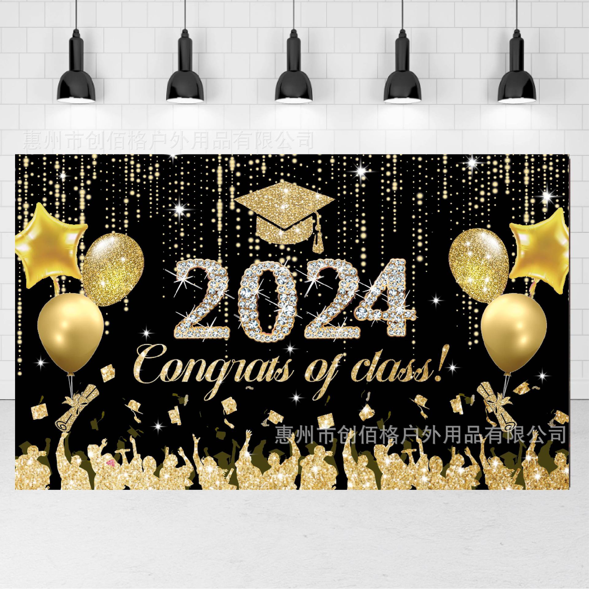 国境を越えた新しい卒業テーマのバナー黒金背景室内装飾用品180*110cm