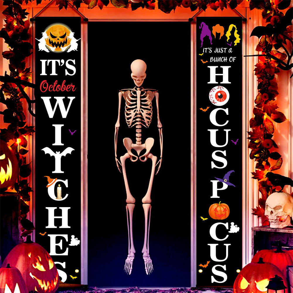 2024年新作 ハロウィン対聯 怖い雰囲気 魔法の魔女 ハロウィン飾り 吊り下げ旗 テーブル旗