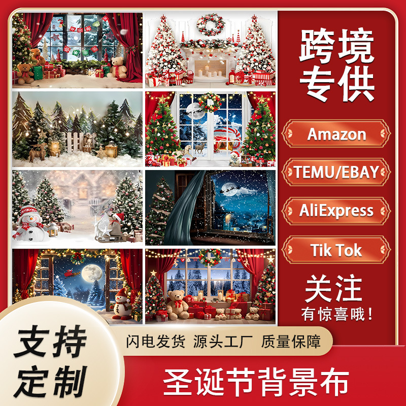 2025国境を越えたアマゾンのギフトボックスクリスマスのドアの幅の背景の布の丸い写真の道具のパーティーの装飾の旗