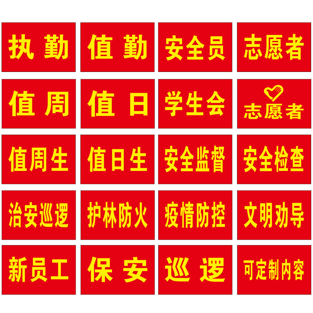 腕章安全員治安パトロール当直ボランティアの腕章を作って、ベルベットの赤い腕章の腕章を作ってロゴを印刷します