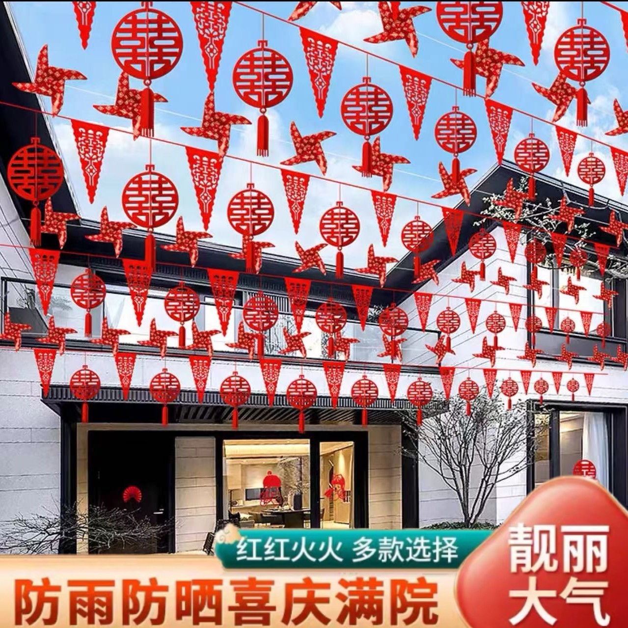 庭の結婚は旗の小さい色の旗の立体の円喜の風車の四角形の喜字の庭の花の凧の誕生日の提灯を引きます。