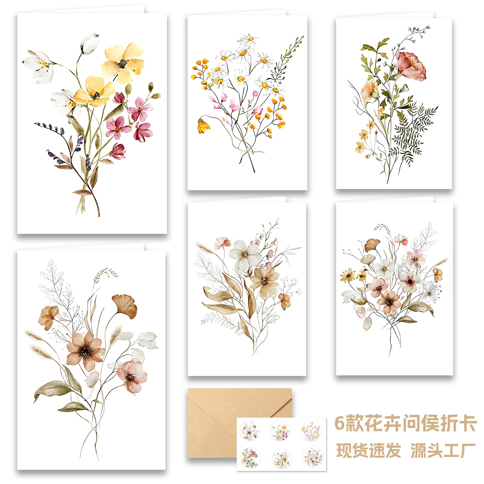 アマゾンギフトカード風インスタ風封筒ステッカー付き手書きホリデーグリーティング植物花柄越境折りたたみカード