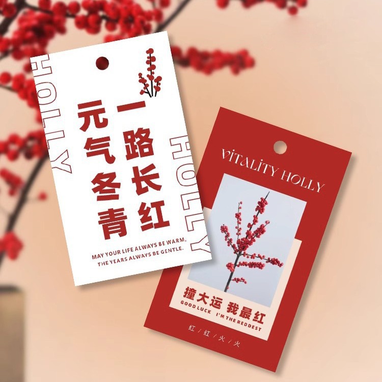 鉢植えの新年カード鴻運冬青養生カード胡蝶蘭装飾吊り札朱頂紅花卉植物賀