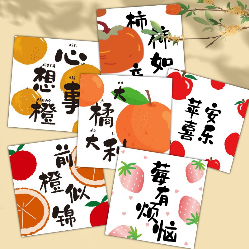果物の語呂合わせ祝福カード柿如意中秋節カード桃花屋花束カード好柿落花生小カード
