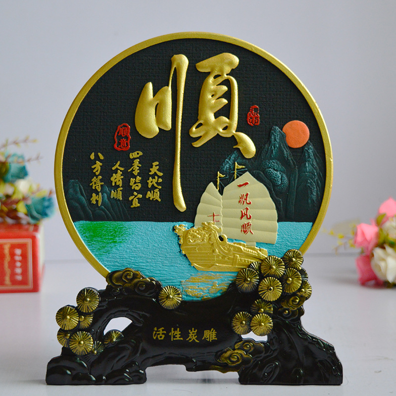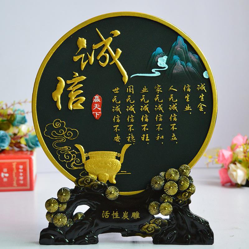活性炭彫刻激励志家庭工芸品客間オフィス円盤置物ビジネス新中国式贈答品卸売り