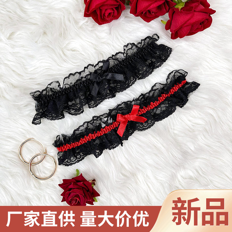 原宿ファッションセクシーな黒ロリータ弾性レースラブリボン太ももリング脚装飾女性
