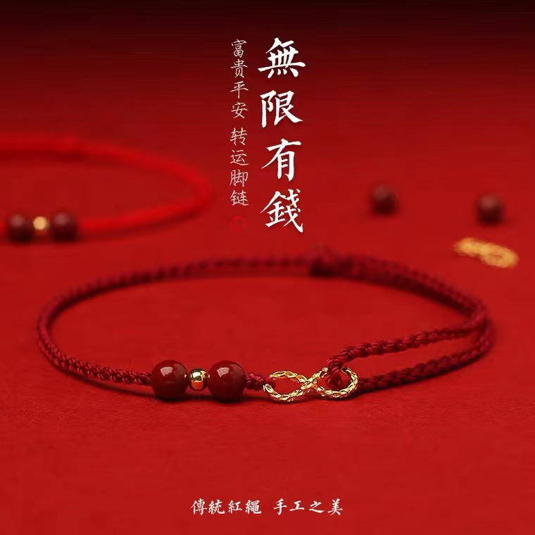Ins本命年朱砂足チェーン女夏紅縄足紐女編み天然規格品民族風新作転送ビーズ