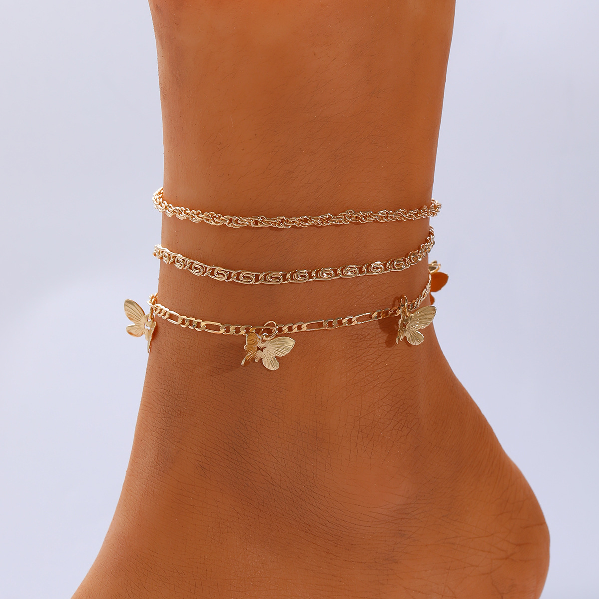 欧米のクロスボーダー新型個性ビーチ蝶足チェーンファッション創意シンプル粗チェーンins風足チェーン3点セット