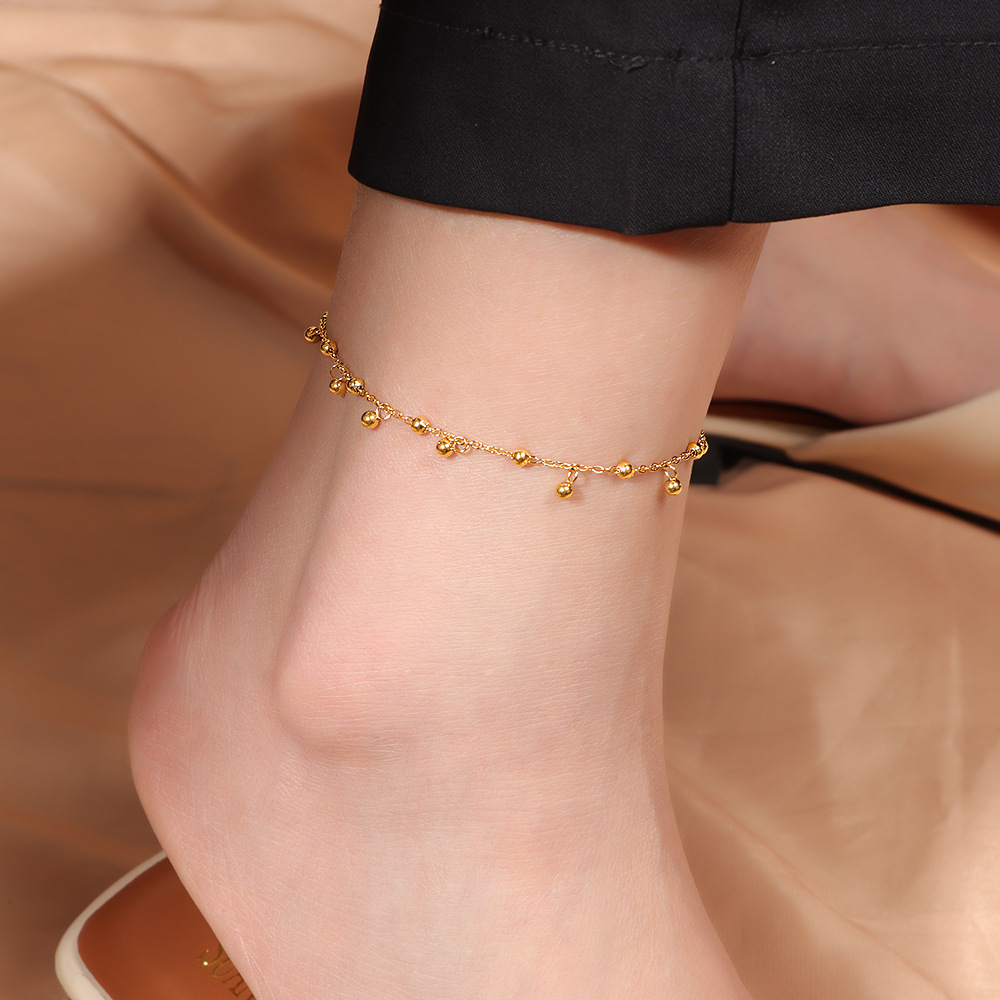 新しいチタン鋼ゴールデンビーズレインドロップアンクレット女性用ニッチデザインハイエンドライト高級ビーニーフットアクセサリー色あせません女性用
