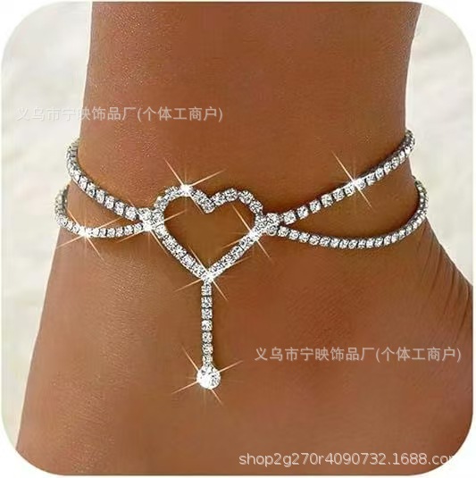 欧米のクロスボーダーの装飾品はドリルを入れて双心の足のチェーンの女性の幸運な心を抱擁します。
