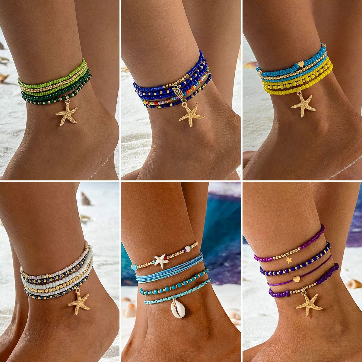 国境を越えたボヘミアン海星貝殻カラー米珠足鎖セットビーチ風海星数珠足飾り女