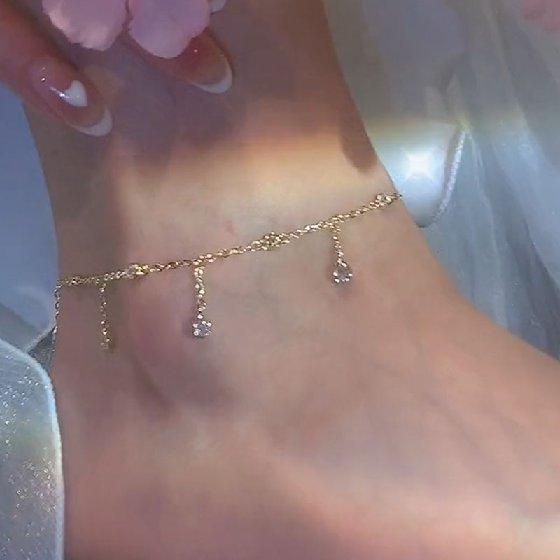 韓国水晶流蘇足鎖女ins小衆デザイン高級感シンプル個性気質ネット赤足アクセサリー潮