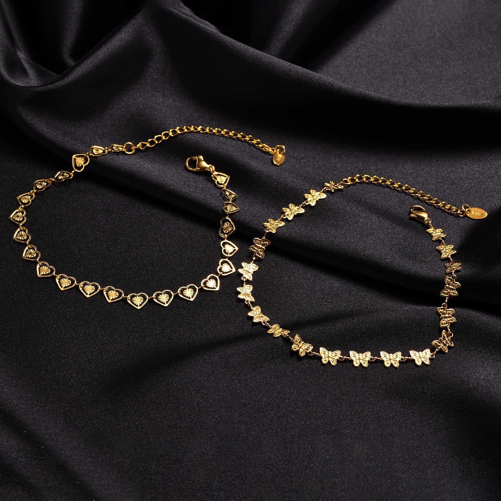 歓沐アクセサリーチタン鋼ハート型蝶足鎖金色女子モデル21 + 5cm夏足飾りシンプルins風