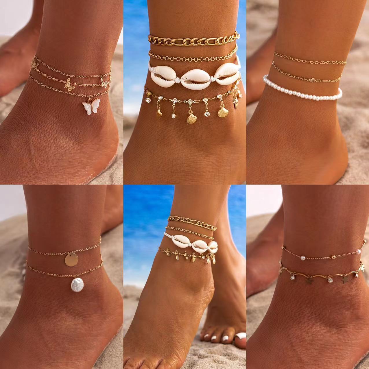 クロスボーダーファッション多用途サマービーチスタッキングビーズフットアクセサリーイミテーションパールシェルヒトデオイルドリップペンダントアンクレット