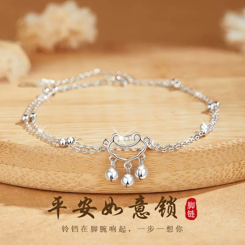 平安鎖円珠脚鎖女2024新型爆金高級感七夕誕生日プレゼント彼女の親友の足飾り