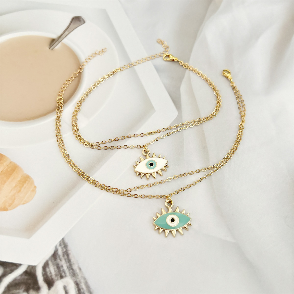 国境を越えてよく売れている油悪魔の目のペンダント二重チェーンの足のチェーンの女性のビーチの休暇の足の装飾