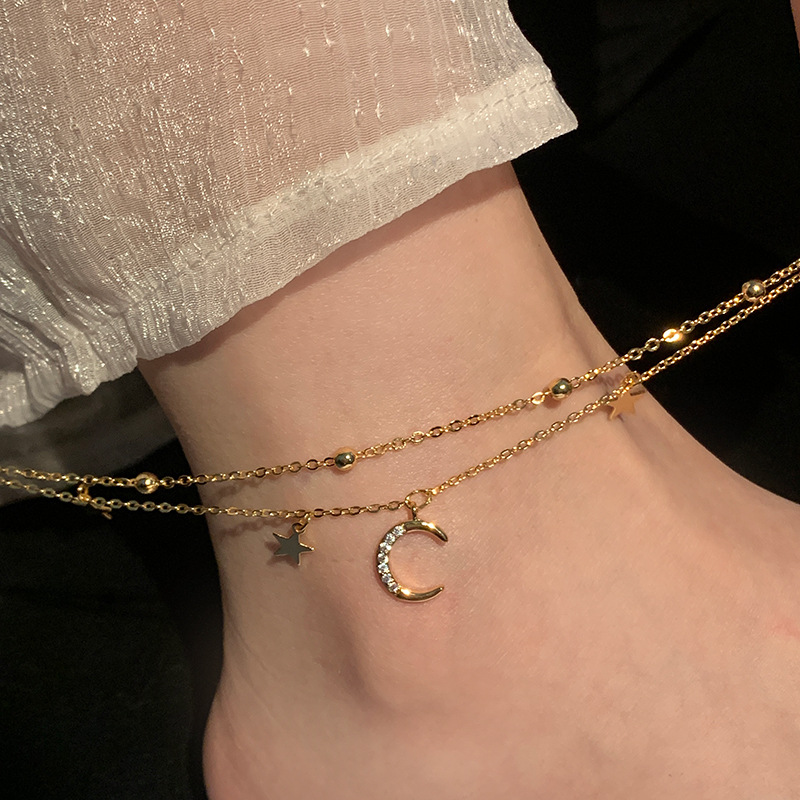 大衆のデザイン感二重星月の足のチェーンは軽くて豪華で、精巧で冷たい風の足のチェーンの高級感の足の裸のチェーンです。