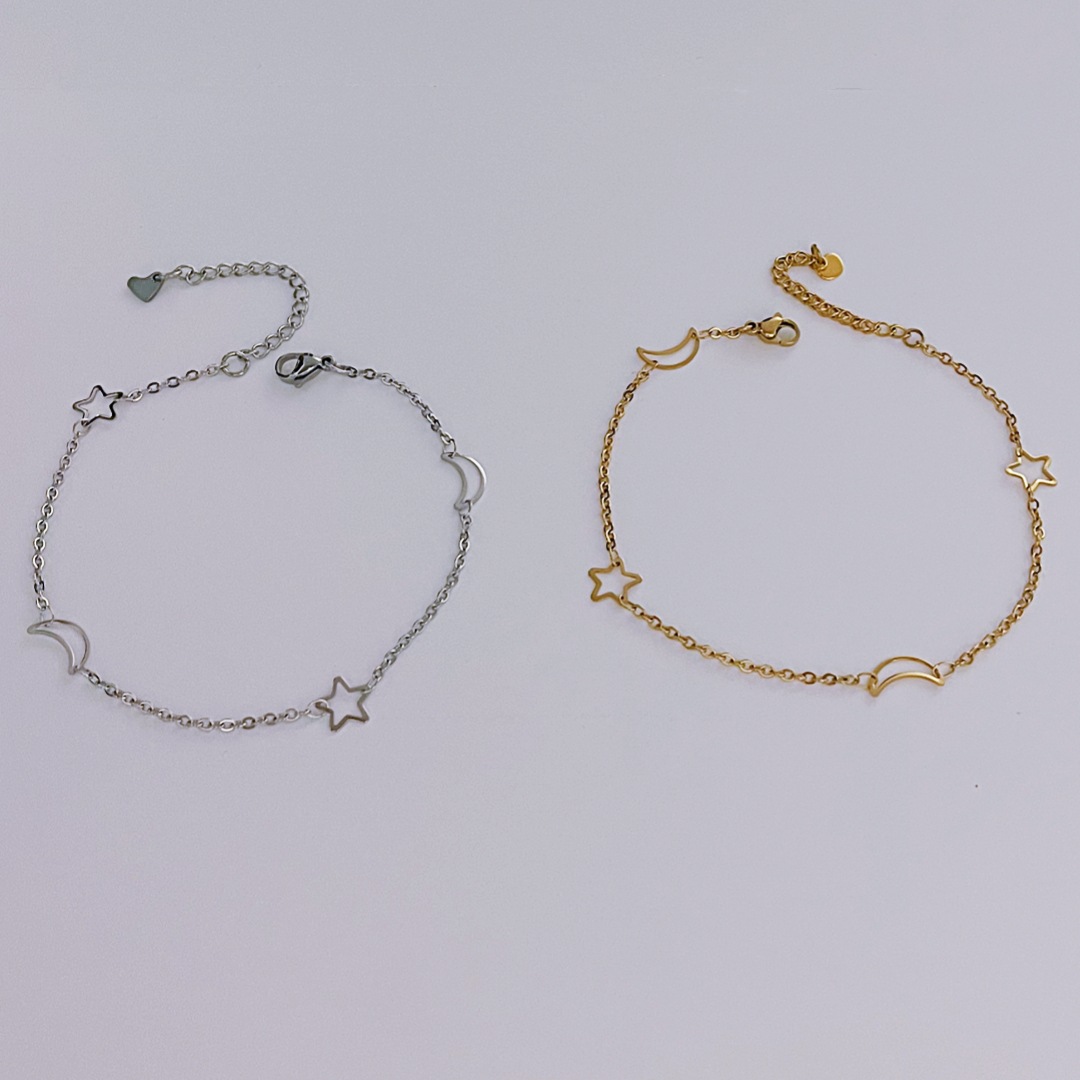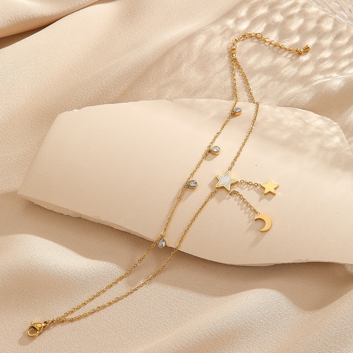 国境を越えた新型金色チタン星月ペンダント二重足鎖男女同金は海辺の砂浜に適している