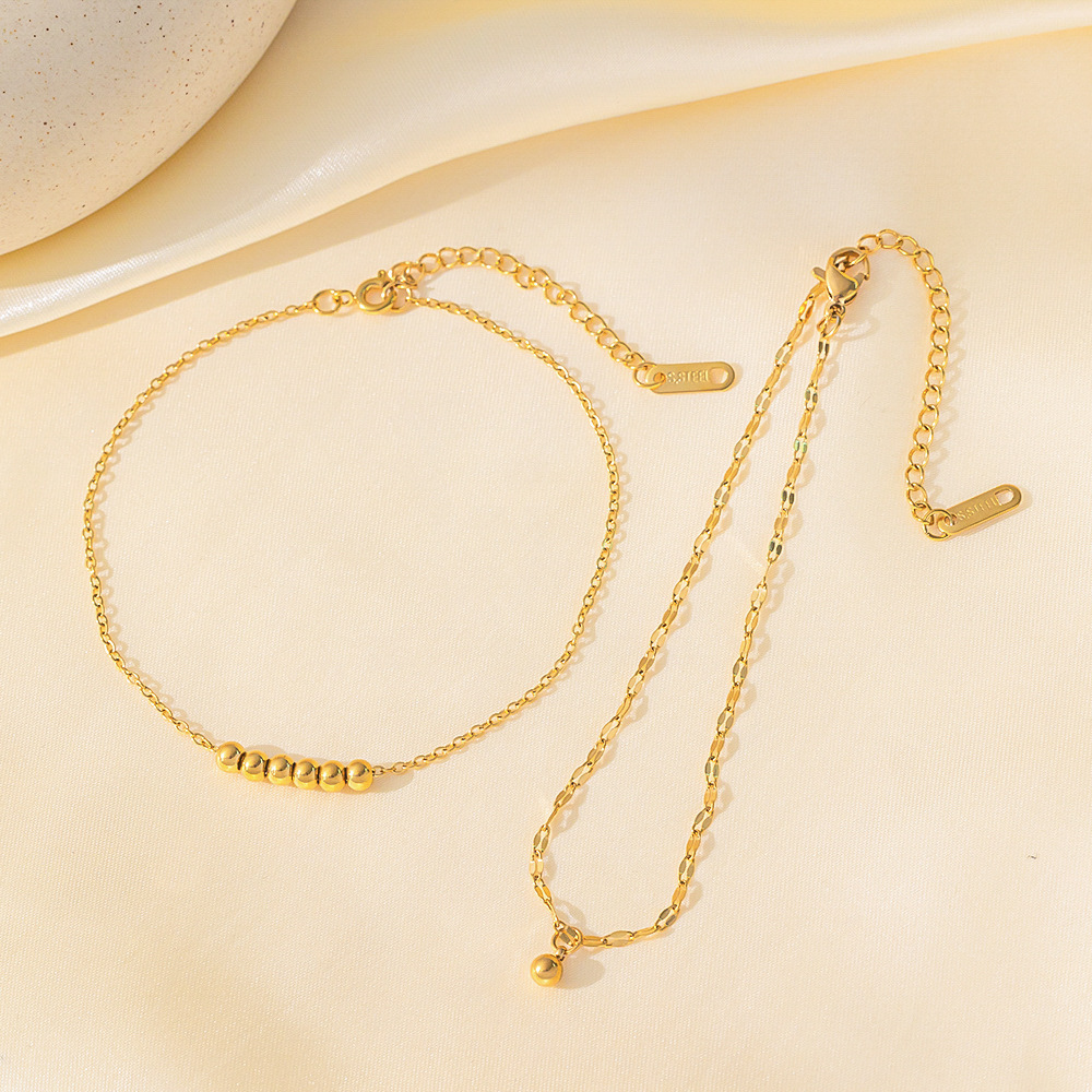 夏の新しいスタイルの小さなビーズ多用途ファッションアンクレット女性のためのチタン鋼メッキ 18 K ゴールド高品質フットジュエリー卸売