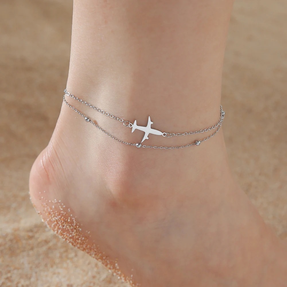 飛行機のペンダントの足のチェーンの女性のステンレスの飛行機の二重の双珠のチェーンの足のチェーンのボヘミアンの夏のビーチの宝石