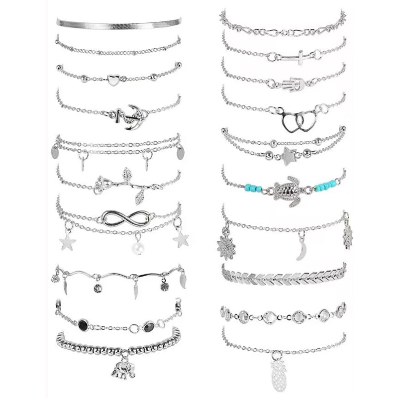 欧米の越境して新型の夏の8字の象のウミガメの足の鎖の20セットの桃の心の太陽のパイナップルの合金の足の鎖