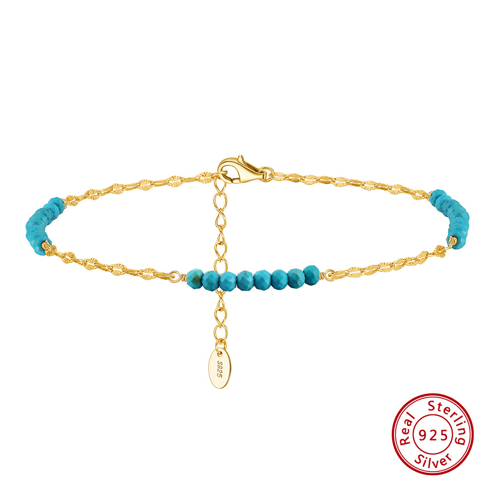 雲はアクセサリーのs925の純粋な銀の鎖と緑の松石の組み合わせの足の鎖の女性の小さい大衆を引いてビーチの足の装飾の卸売りを設計します。