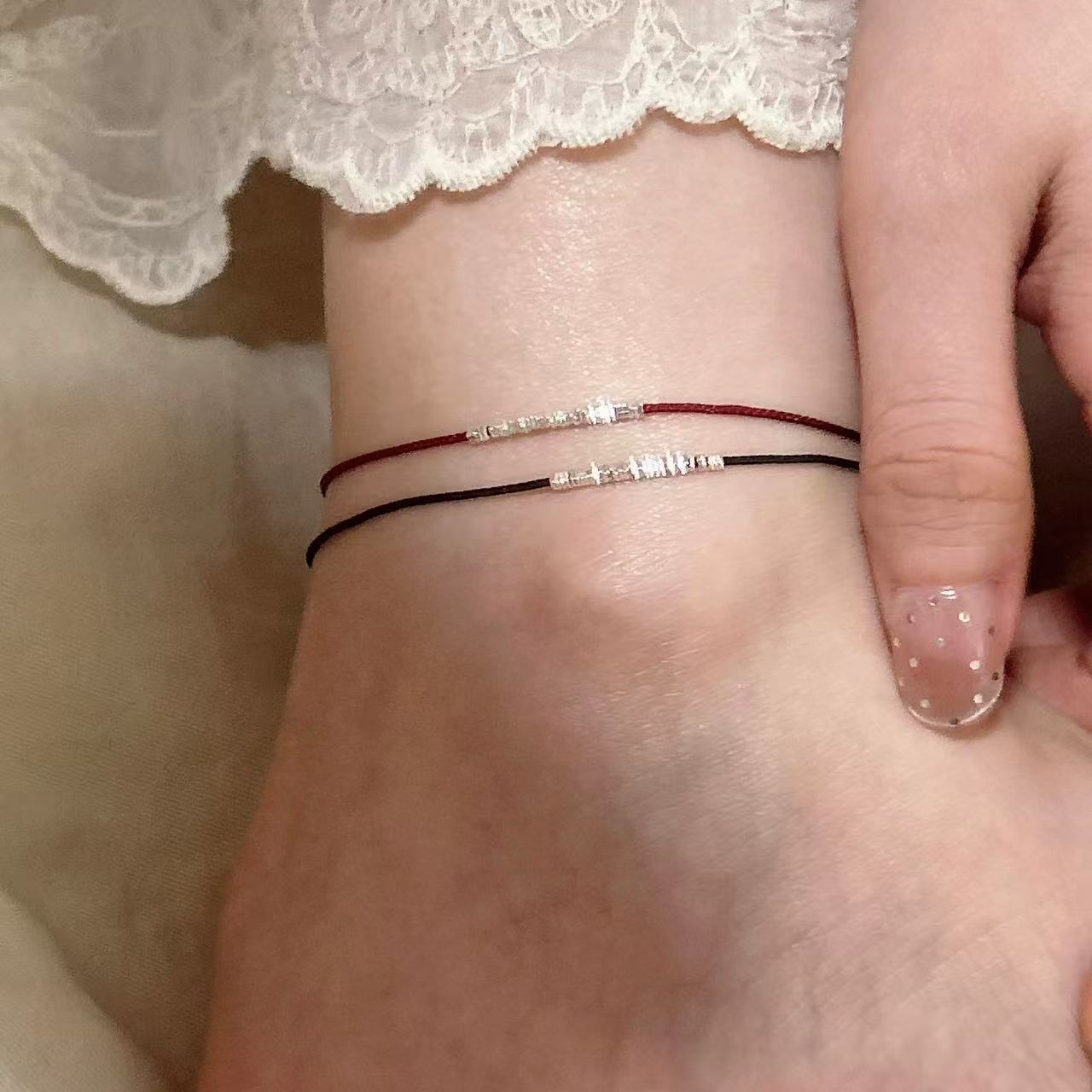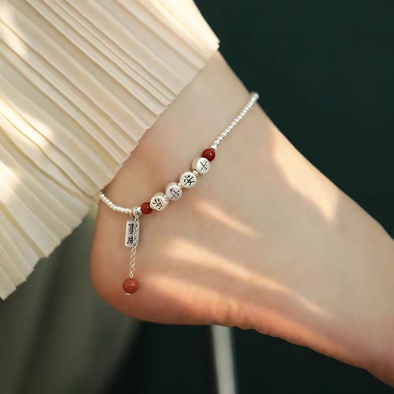 ブロークンシルバー レッドロープ スモールブラックロープ アンクレット ニッチデザイン シンプルで多用途 シングルウェア スタッキングアンクレット 女性用