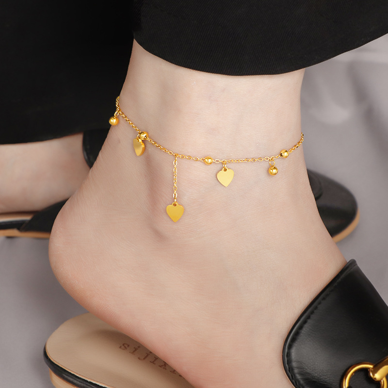精巧で高級な立体の小さい愛の足のチェーンの女性の韓国の小さい大衆の設計insは簡単にチタンの鋼をめっきして18kの金の足のチェーンをめっきします。