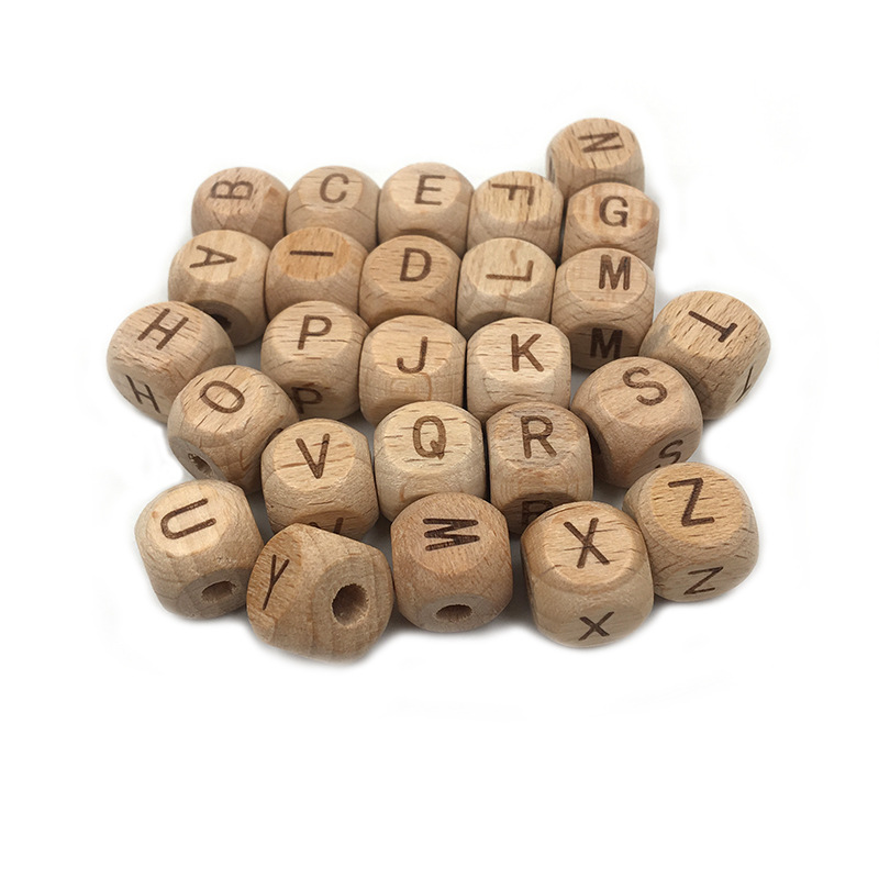 Diy ins部品12mmケヤキ英語アルファベット角珠レーザー彫刻マーク赤ちゃん歯磨き玩具