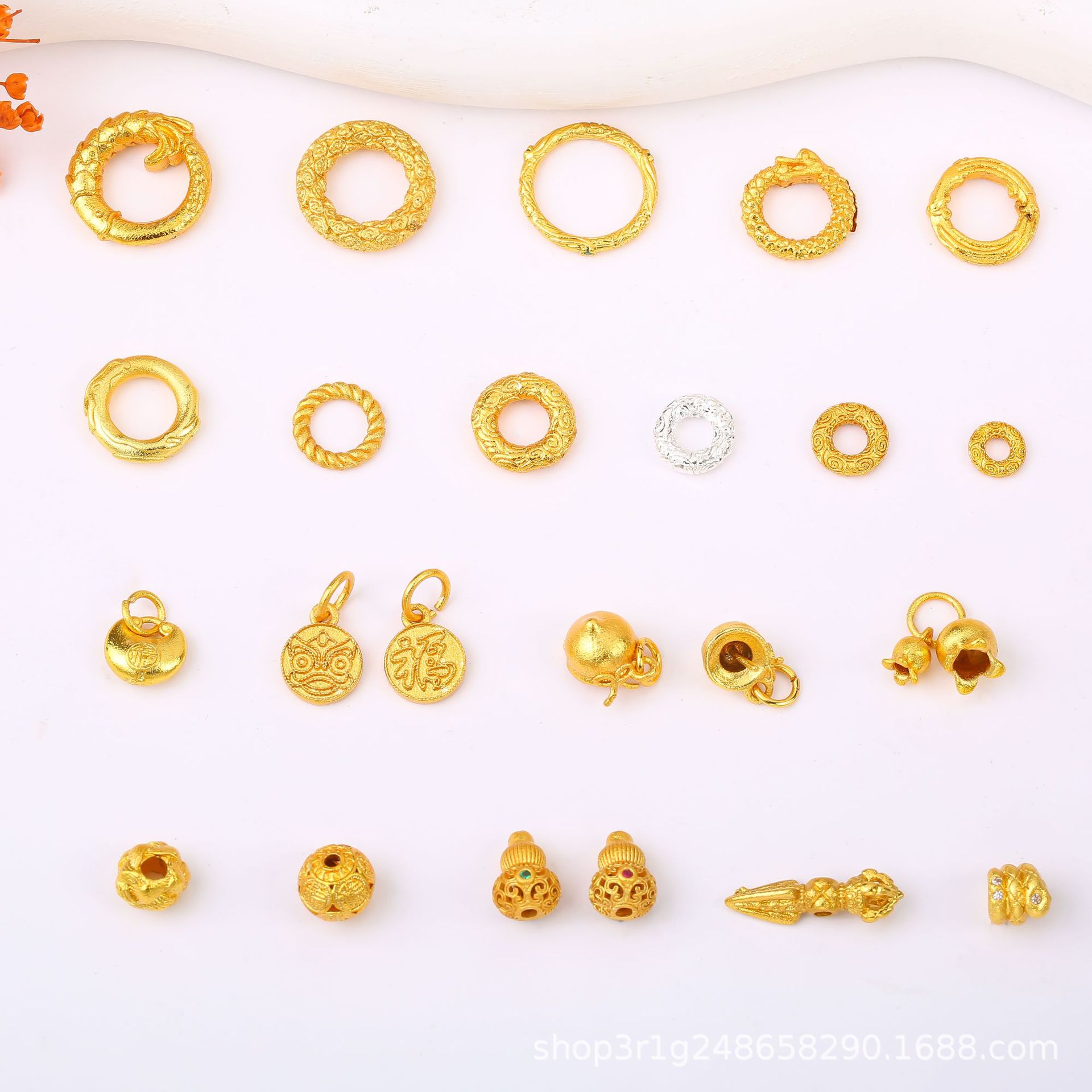 保色沙金乾坤セット珠輪瓢箪福珠隔珠打浪鼓福袋鈴蘭花ザキラムペンダント