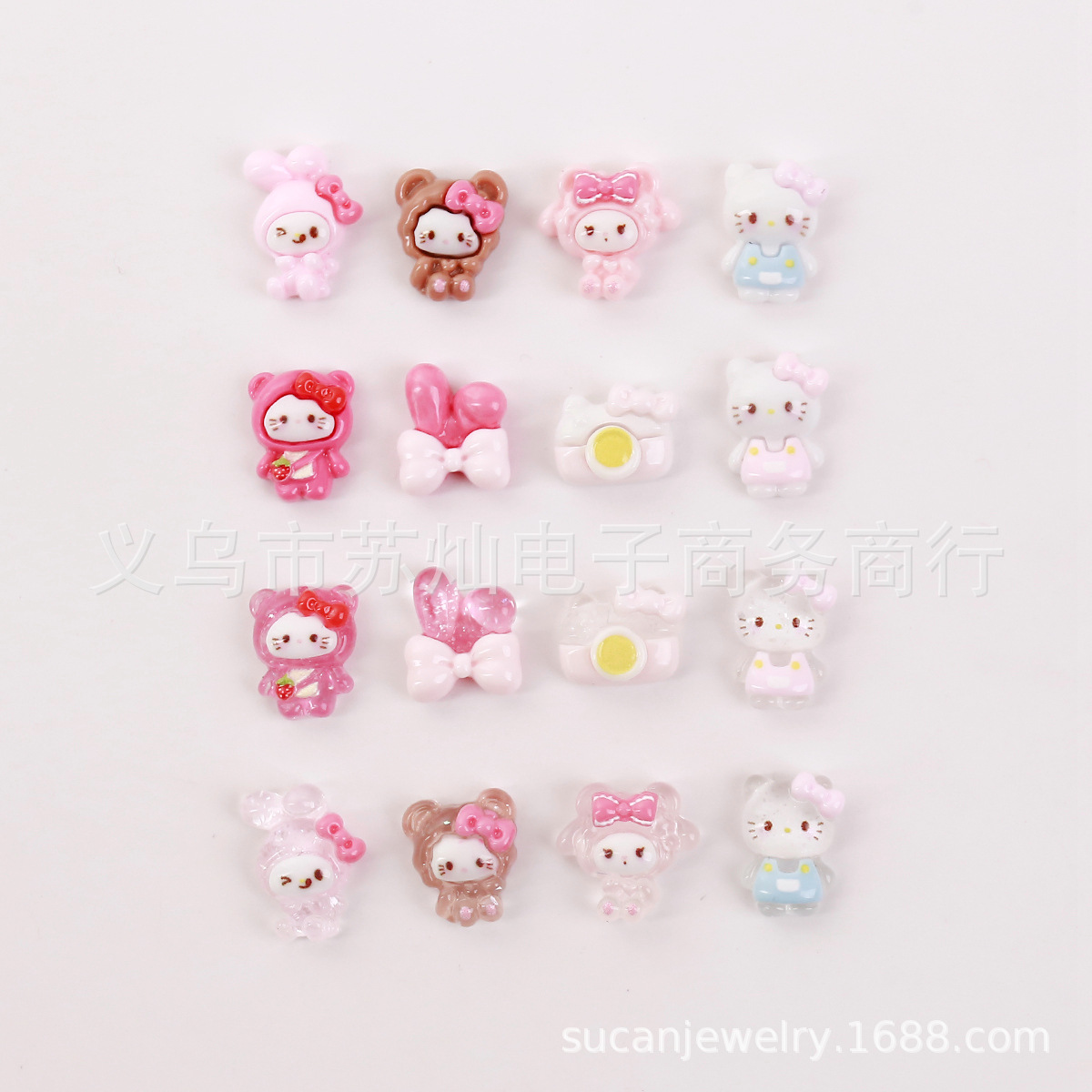 樹脂のケイティの漫画のアクセサリーのピンクのかわいい立体のkt猫のクリームのゴムのヘアピンの冷蔵庫は服装の甲の部品を貼ります。