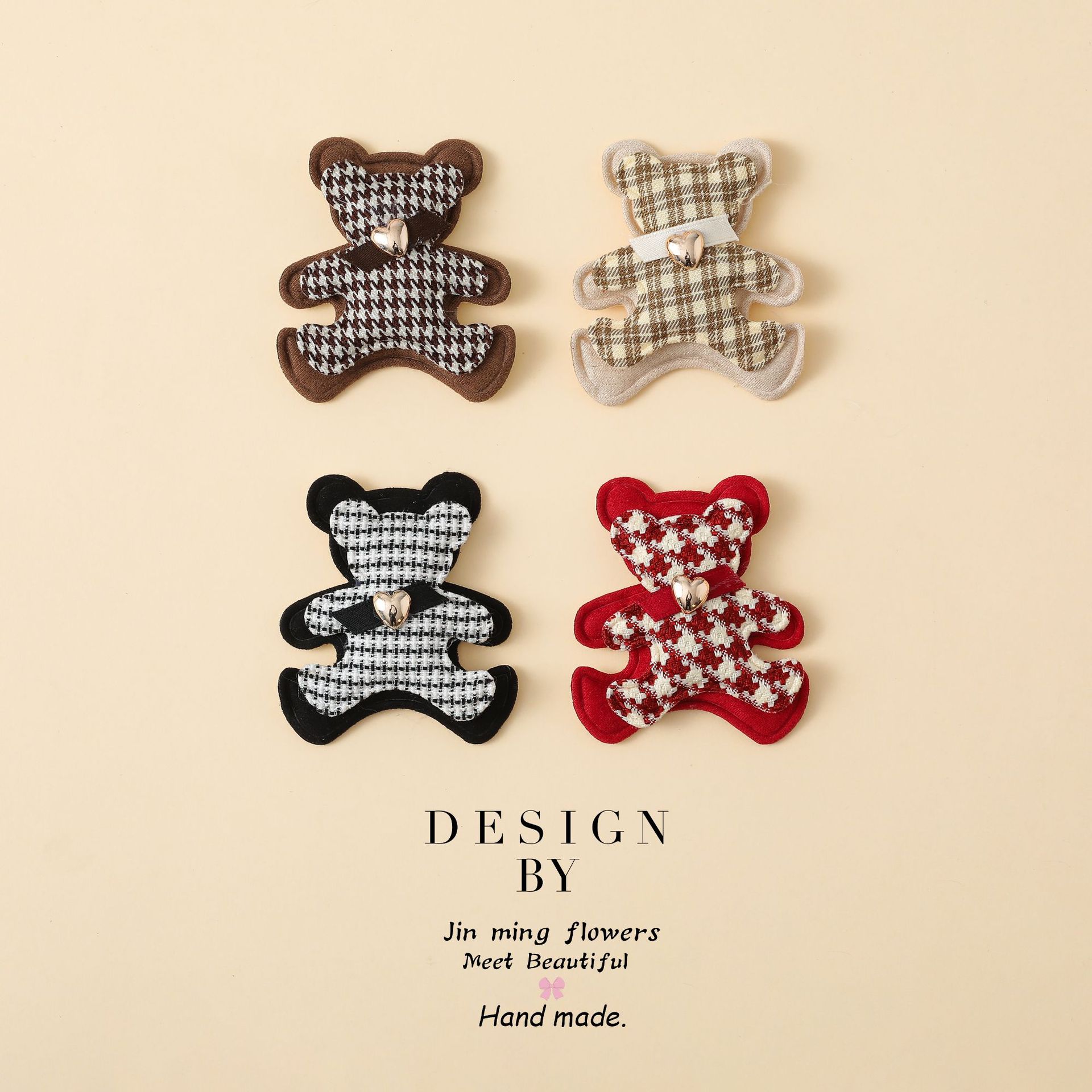 布芸手作りdiyアクセサリー千鳥格熊アクセサリー子供服アクセサリーアクセサリー格子二重熊