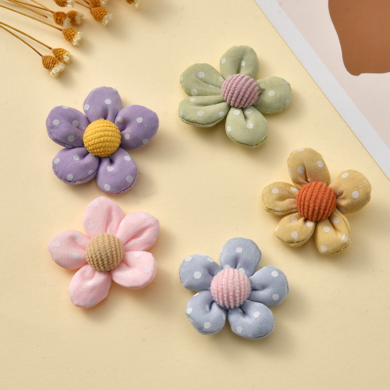 韓国版カラー波点五弁花ブローチアクセサリー服装綿人形アクセサリー髪飾り花アクセサリー