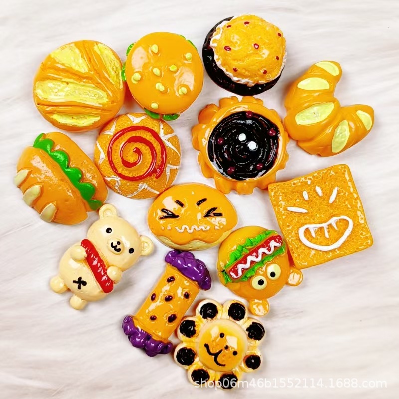 模擬食品おもちゃパンバーガー樹脂アクセサリー卸売クリーム接着剤 diy 材料パッケージ携帯電話ケースジュエリーアクセサリー