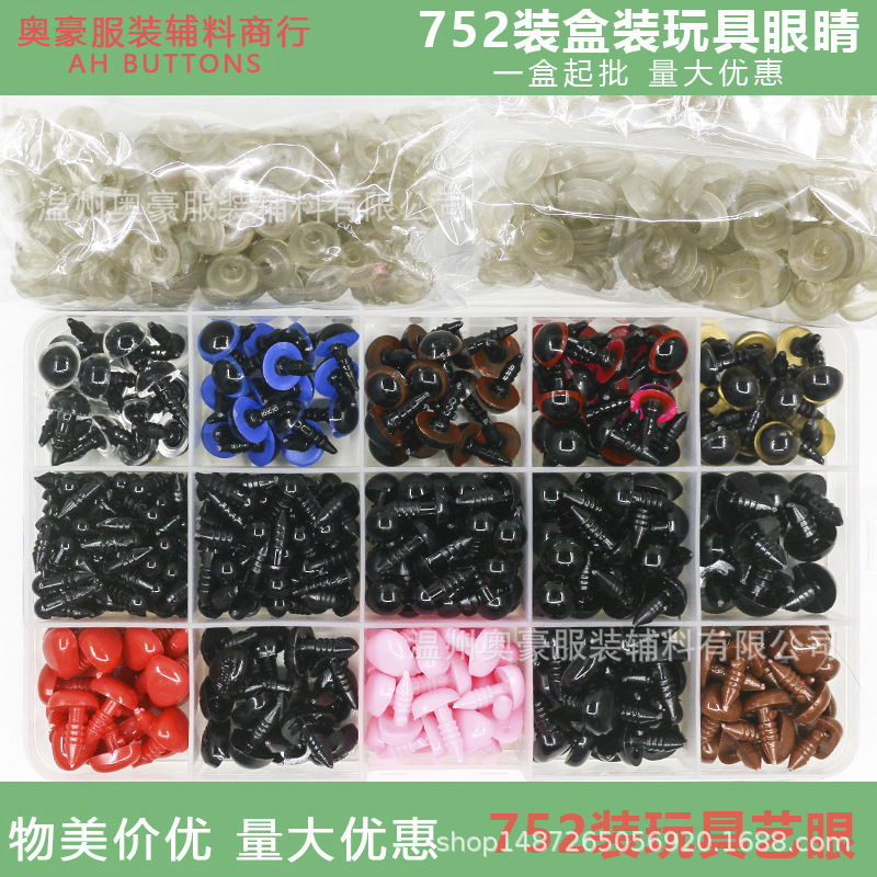 箱入りぬいぐるみプラスチック玩具黒色目鼻diy三角楕円形752個