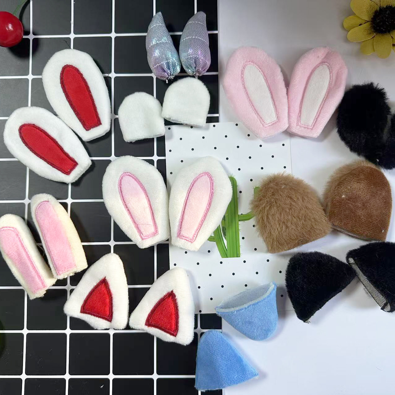 ぬいぐるみのウサギの耳に綿を入れた立体帽子のカチューシャ猫の耳のおもちゃのぬいぐるみのブローチのアクセサリーの部品