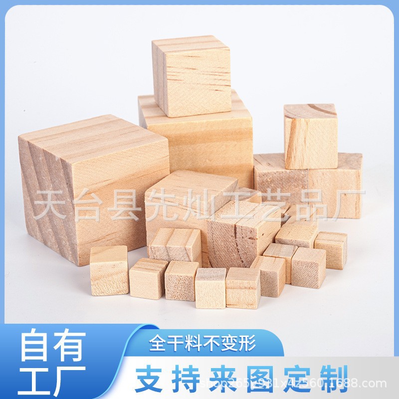 木の四角の子供のおもちゃの積み木の数学の教具diy模型の益智の正方形の小さい木の塊の模型の材料