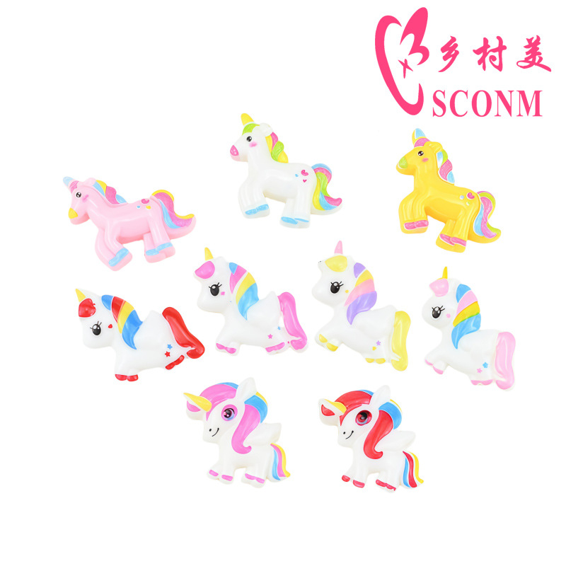虹色のユニコーンヘアピン装飾材料、人気商品、ポニーレジンDIY玩具装飾アクセサリー卸売