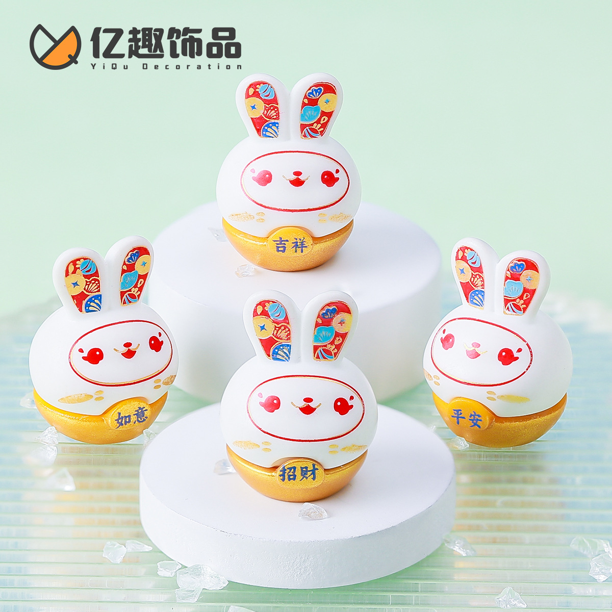 創意新年招財元宝小兎公仔立体diy装飾品部品微景観ミニ置物