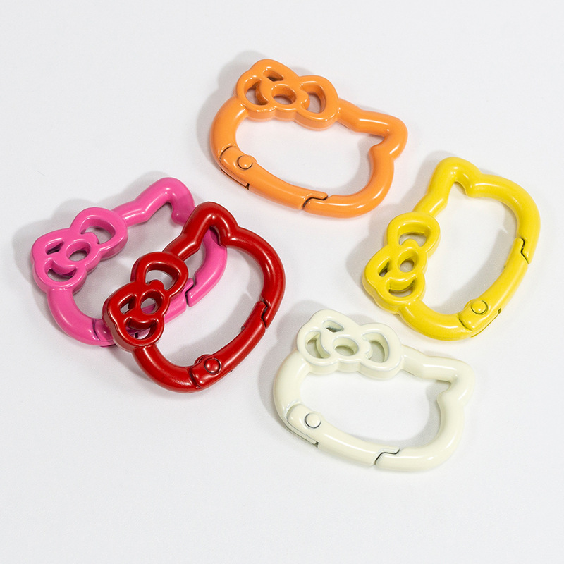 合金塗装カラースプリングバックルアクセサリーkt猫開口花スプリングリングキーホルダーDIY部品接続バックル