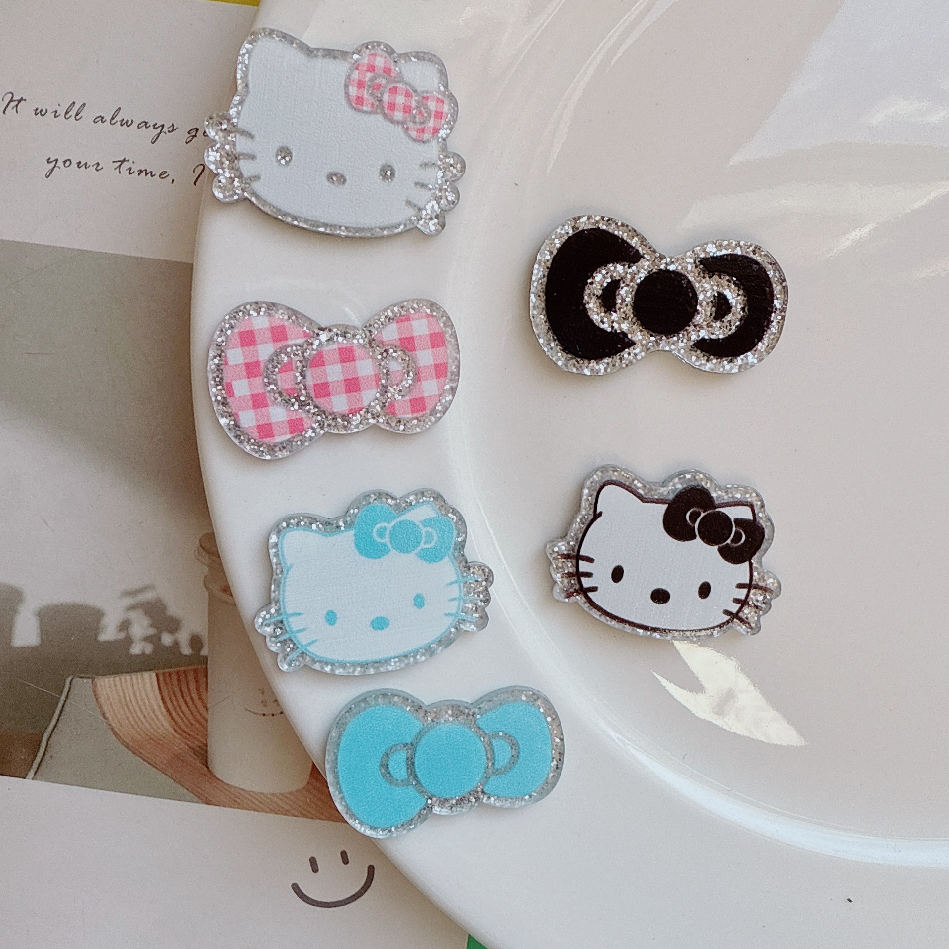 キラキラピンクの青い猫アクリルdiyアクセサリーヘアクリップ玩具バッグ材料穴靴花アクセサリー