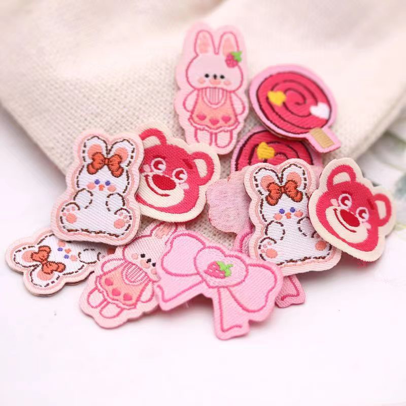 ピンク系アメいちご熊蝶ネクタイ模様布マーク装飾ヘアピン材料アクセサリー