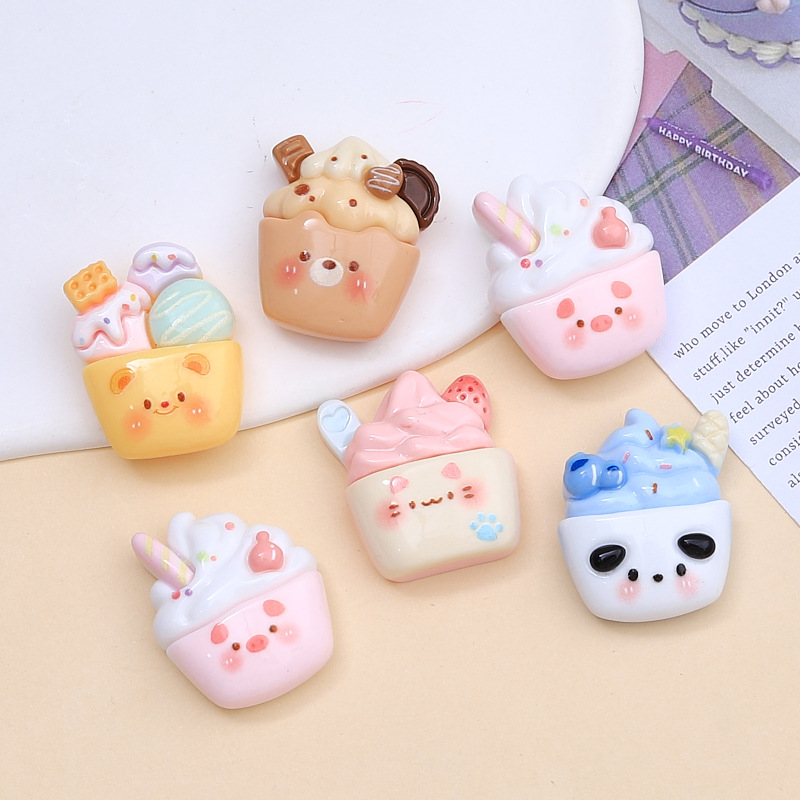 樹脂部品食游漫画クリームゴムdiyヘアクリップ穴靴ボタンアクセサリー装飾かわいい動物ケーキカップ