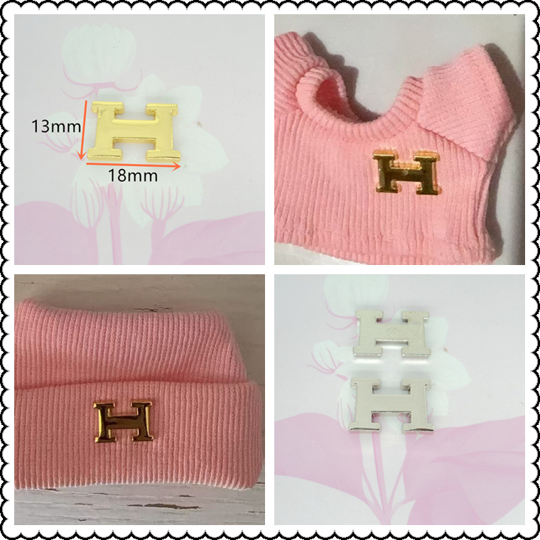 ファッション人形ベビー服英語 H ハードウェアラベルトレンディなラブ服文字 H 型合金ラベル 13*18 ミリメートル