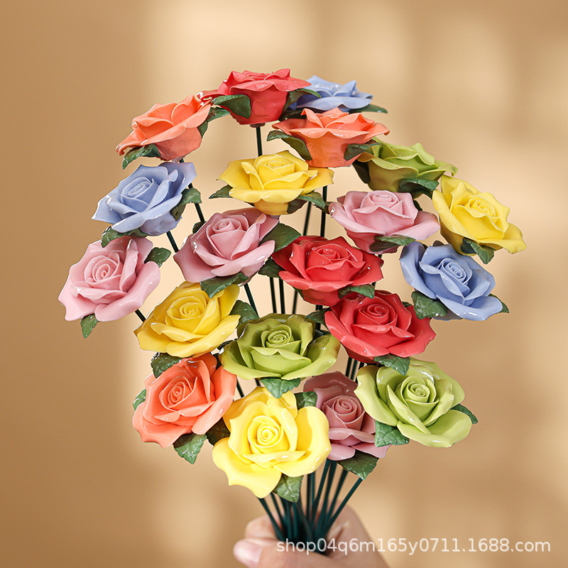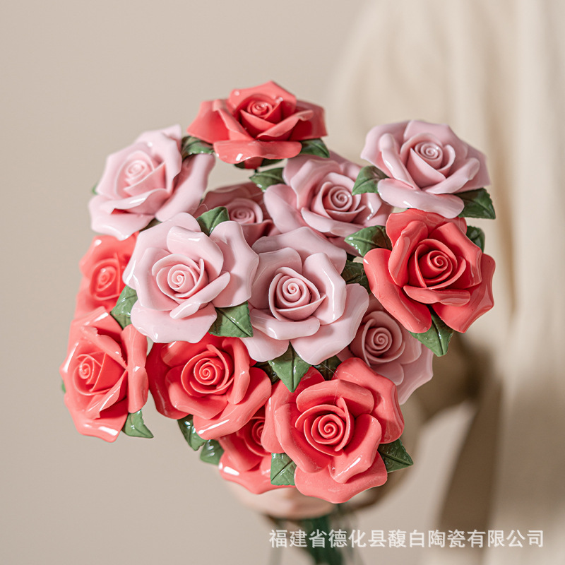 景徳鎮手捏陶器花束、永遠の花、模造DIYブライダルブーケ、ギフト、装飾品