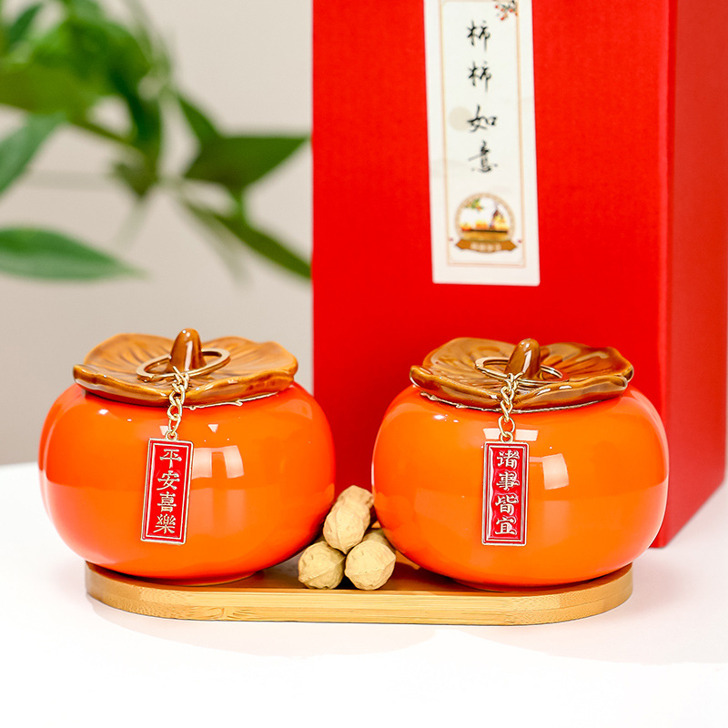 創意陶磁器柿茶葉缶密封缶ギフトボックス柿如意灰皿結婚祝い置物プレゼント