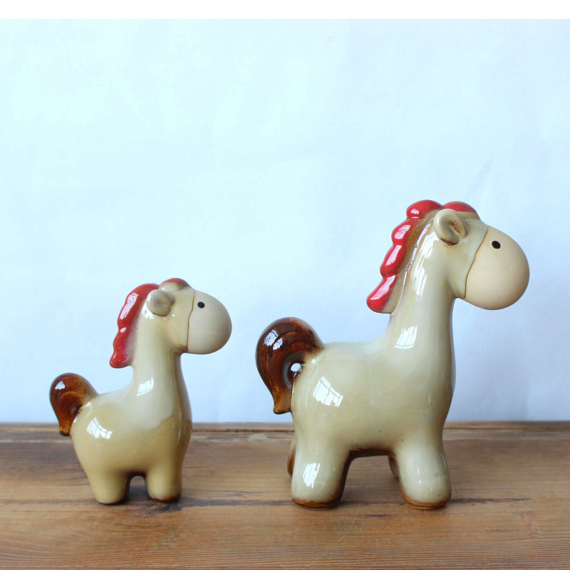 代件窯変陶磁器馬工芸品家庭母子馬置物客間ホテル陶磁器馬置物2974
