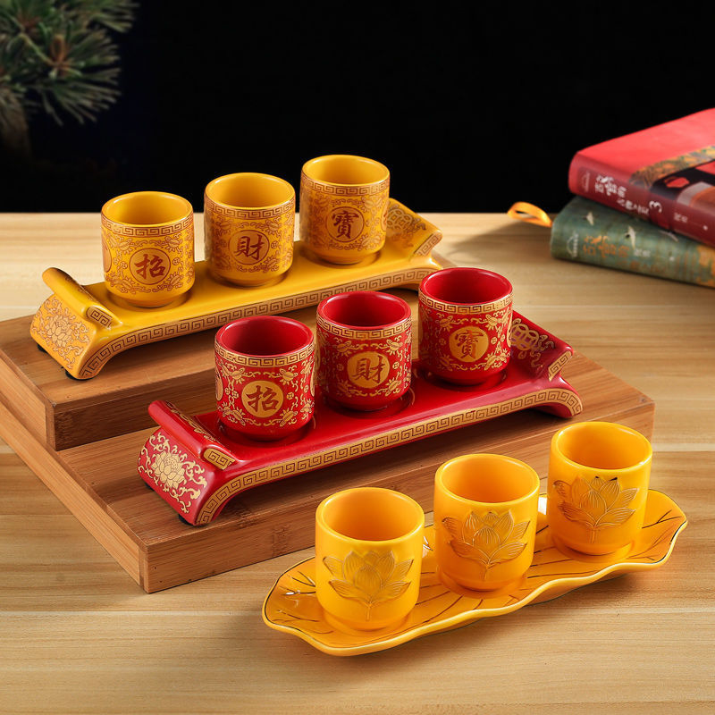 陶磁器の家庭用拝神杯の杯の杯の仏堂は仏陀を供えて財神の急須の酒の壺のセットの置物の用品を供えます。