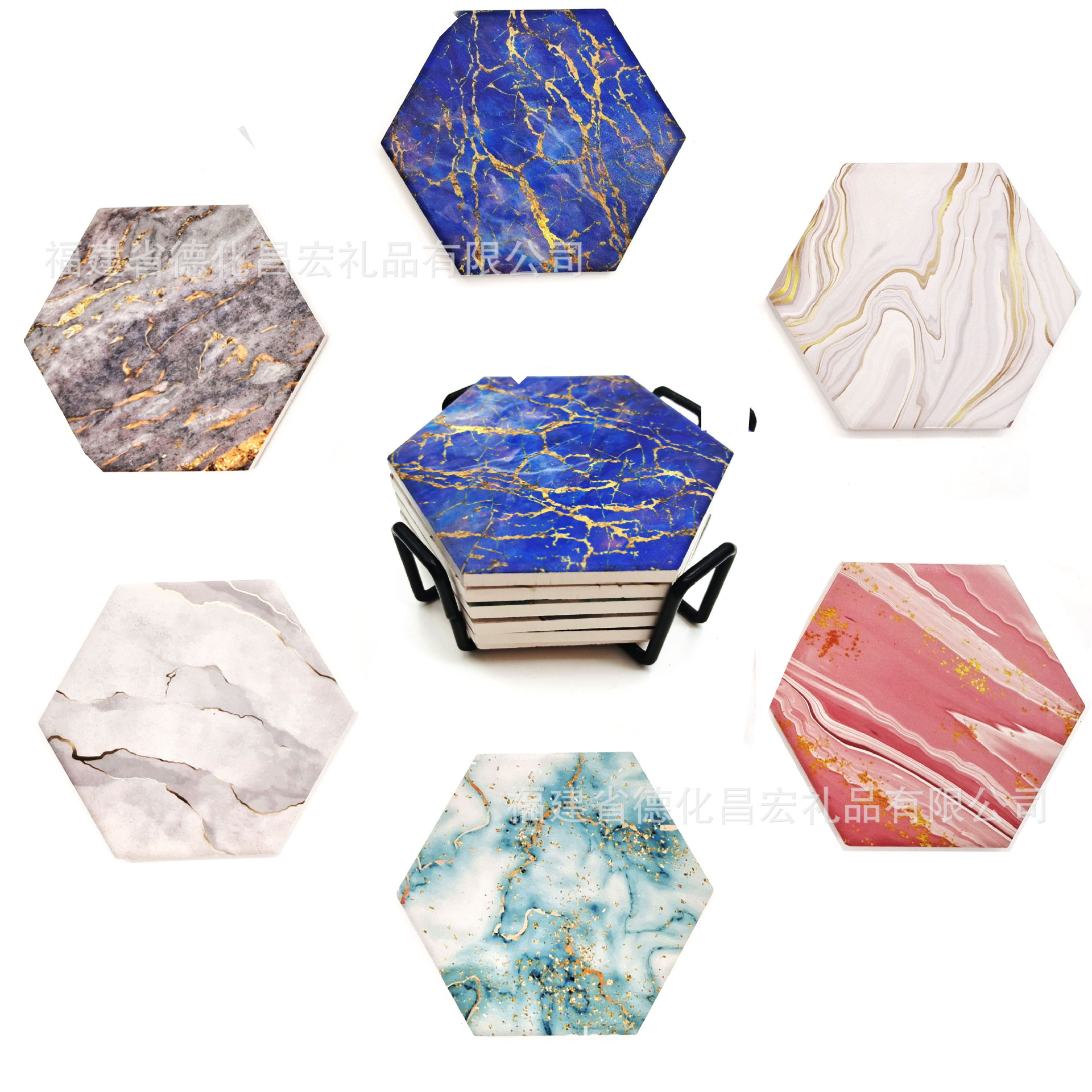 源メーカークロスボーダー専用六辺大理石陶磁器コースター吸水滑り止めコルクコースター