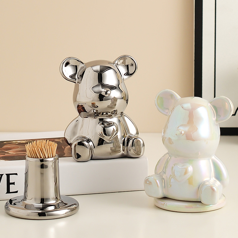 暴力的な熊陶磁器のつまようじ箱家庭用の高級な個性的な創意は軽くて豪華な高級な顔の値のつまようじの箱の綿棒の収納筒です。